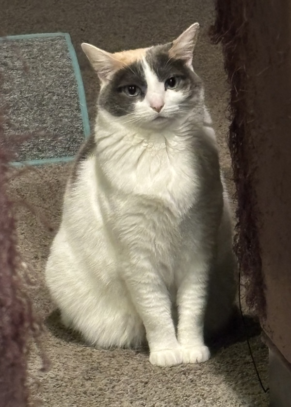 Here’s Nova giving me a judgy look because I yelled at her for eating the kitten’s food.