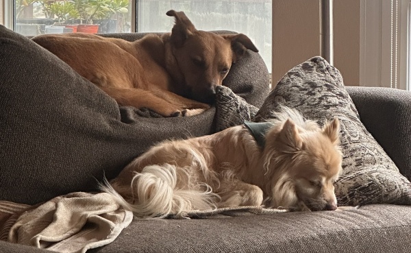 Here’s Annie and Simba at the other house. Apparently not allowed on the couch?