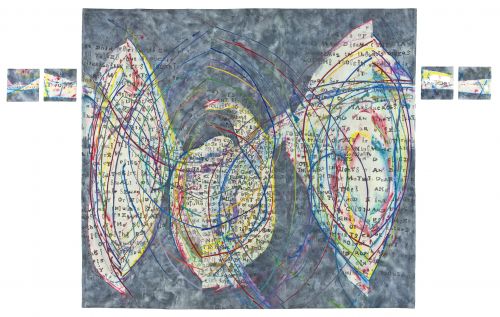 and Jayne Willoughby Scott’s piece Thoughts, which uses lines and letters to show how thoughts and emotions might overlap,