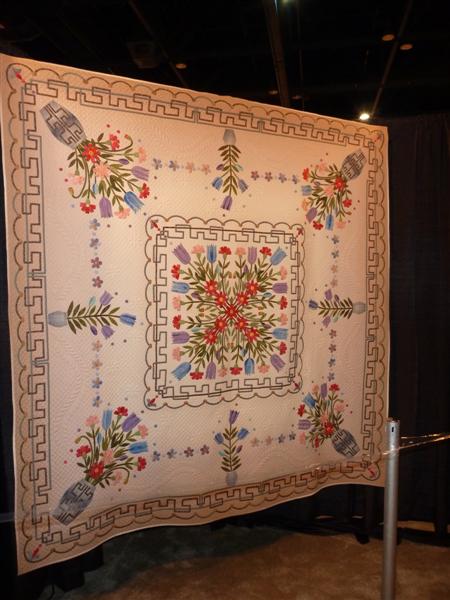 She based the quilt on her travels in Istanbul, which I would not have guessed. This is all hand-quilted.