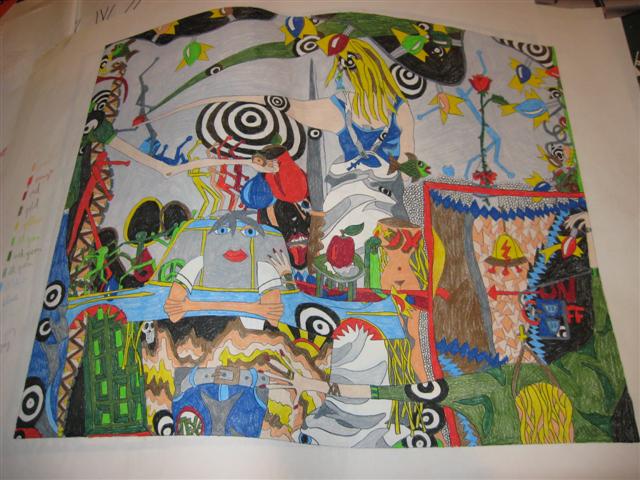Way back when, I still ran off the page…(this is actually fabric crayon on fabric, one of the transition pieces from drawing to fabric work)
