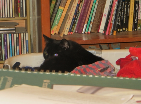 in the laundry basket where laundry goes to die. Seriously, I don’t think anyone has put laundry away since summer. It just piles up in baskets until I get frustrated and dump it on someone’s bed or the couch. Babygirl is about two feet to my left at this time. Sometimes Midnight is right behind me, on the back of the couch. They growl at each other. While I’m meditating. Like I said, I don’t think Mr. Meditation deals with my shit. He seems like a nice guy. He probably thinks it should be relatively quiet and growl-free during meditation.