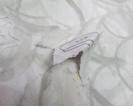 The missing piece…still attached to the fabric in there. Lucky.