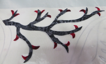 I’ve found that I am having other brain short circuits, though. I usually pick background fabrics for my quilts before I start ironing Wonder Under to fabric. I have the background fabric sitting right next to the table where the pieces are laid out, so I can compare and make sure the new fabric will work with the background, as well as with everything else. I am usually really good at picking appropriate background fabrics well before the rest of the fabrics are chosen. The quilt colors itself in my head, and I just follow that diagram.