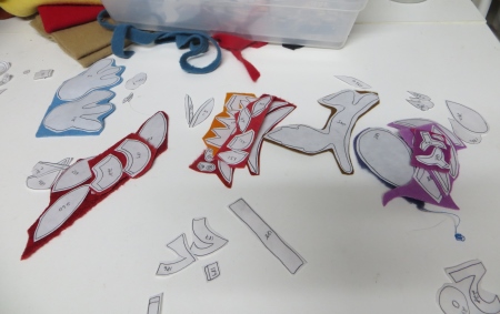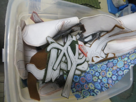 which is complicated by the fact that there are wool parts of flowers and cotton parts of flowers, so I’m cutting all the wool first, and then I’ll find cotton that works with it, since I have a fairly limited stash of wools and a vast stash of cottons. I made it through almost all the flowers…at least the wool parts…and there’s a squirrel and a bunny in there too.
