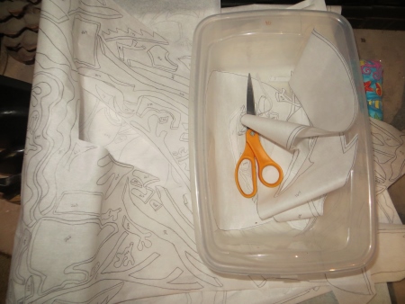And Sunday night, I started cutting out Wonder Under for the Mammogram quilt. I didn’t get very far…