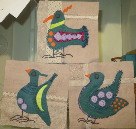 What can I say. It’s late. I’m not sleeping well. I was cranky today. One kid asked me if I’d taken my pill today. WTF? Sometimes teaching middle school is really difficult, challenging, in your face. I did do a color chromatography lab today, and the coolest part is when the ink (which I have them make in class) starts to move and spread the colors up the filter paper…they actually OOOH and AAAAH. It’s very cool. That’s when I know I’ve got them. Now if only I could persuade them to do their homework. I have been stitching anywhere that I sit down for any period of time…last night at the quilt meeting I got all of this done except for about an inch of the wing before they turned the lights out for the presentation…