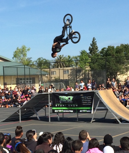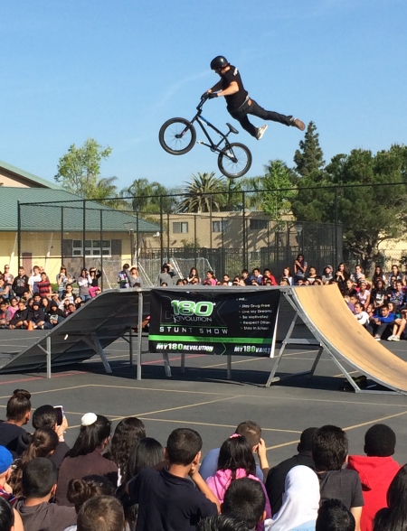 It’s not that I disagree with those things for my students; it’s just that I don’t think it works to get them to repeat it back during an assembly like this. They don’t hear it. It doesn’t sink in. But the bike-riders were cool.