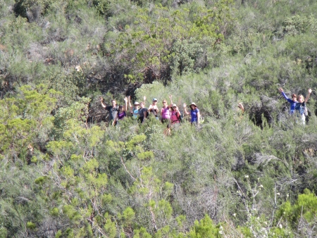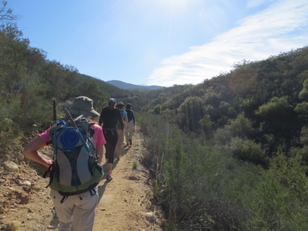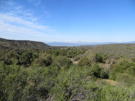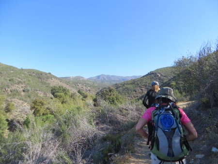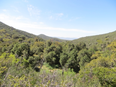 The hike starts out in a pretty valley with lots of oaks and wildflowers…we even briefly saw a deer hiding in the brush.
