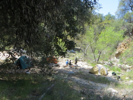 At about the 5-mile mark, we went off the PCT to follow the stream. This required some minor bushwhacking, which might have been an issue if what we had seen by the stream had been poison oak. We didn’t think it was, and it’s been a few days since I got slapped in the face by one of the questionable plants, and I am still rash-free, so I think we did OK.