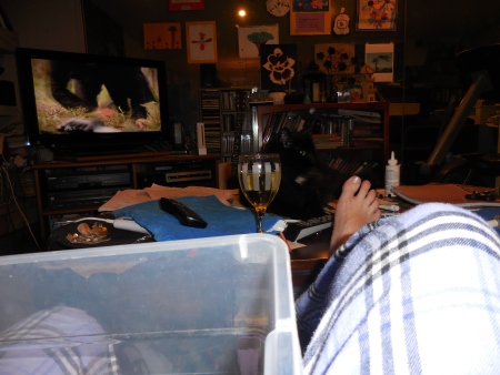 My cutting view: TV, messy house, pajamas on, single glass of wine. I get my hour in, then I go to sleep. The sleep of the exhausted. That’s what low blood sugar does. Fucks with me.