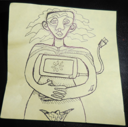 Post-it note with ballpoint pen: not my favorite materials, but I left the sketchbook in the car.