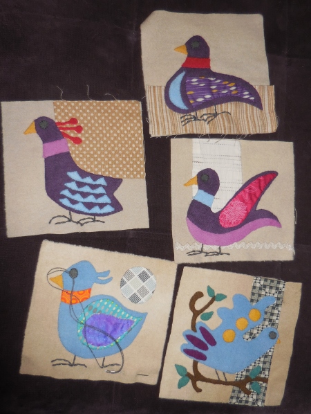 I decided to work on the birds tonight instead of the big quilt. The boychild was using my computer because his is under the dropcloth in the room we painted…so I needed to be in another room anyway. This room, to be specific…with the dogs…