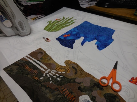 So I ironed more on the big quilt. I quit doing everything else (there was plenty to do, trust me) and just walked in the studio and ironed, which was a damn good thing, because that’s where my head went. Into the artspace.