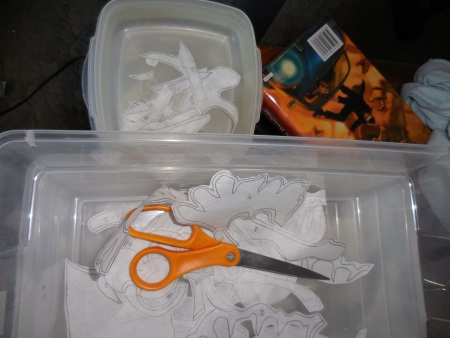 I finished the rest tonight. It took from 5 minutes (bird 2) to 16 minutes (bird 8) to trim the Wonder Under…about an hour and 45 minutes total today. My goal is to iron some onto fabric this weekend, but I really wanted to have the big quilt ironed together before I did that, and I don’t think I can do that as quickly as I’d like. The birds so far have taken from 22 minutes (bird 1) to 46 minutes (bird 8) to number, trace onto Wonder Under, and then cut out of the Wonder Under. Bird 8 has more pieces and is larger. The smaller birds are 1-6. Anyway. It’s progress. Progress is good. I put each bird into a tupperware or rubbermaid container (let’s hope we don’t have many leftovers in the near future) for the next step. It’s not a lot different from what I do now with 100 pieces in a bin, except this isn’t very many pieces, honestly.