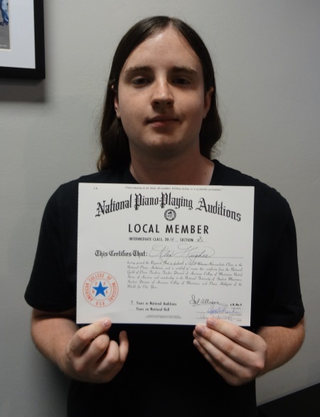 Here he is with his last National Piano Guild certificate…a Superior rank.