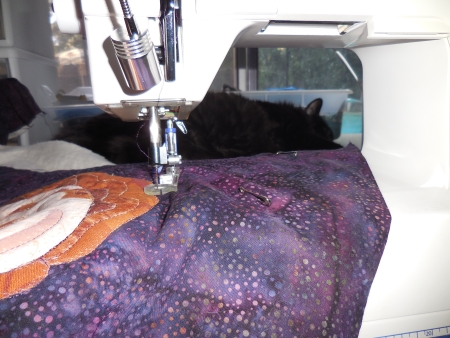 You’ll notice a black cat in lots of these pictures, because apparently she wants to help out with the quilting. It took a lot longer than I thought it would. A lot of that was breaking thread.