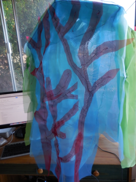Anyway. Back to school again today and tomorrow. In the old days, I would have fought it more, stayed away longer, but in the old days, I had more that was at home that sustained me and kept me recharged. I don’t have any real rechargers any more. I don’t feel like summer has given me the break I need to start a new year of teaching, but I think it will be OK. It will be different, and I don’t know what that different will look like, and I’m sad about some parts of it and excited about others, but I also know at the end of every day, I can come home and draw or sew or cut up pieces of organza and hang them from a coathanger in some crazy-ass desire to express what home is. And for now, that is enough. Because it has to be.