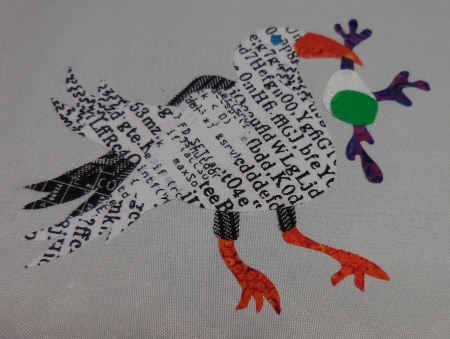 I don’t think it’s the same as the last one. I couldn’t figure out what fabrics I’d used. So I guessed. The tail looks right, but the body is much lighter. Then again, that fabric is mottled all over heck and gone, so maybe I just picked a lighter part of it. Who knows. Who cares. This one will be for sale at the Art Produce exhibit in September.