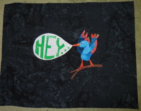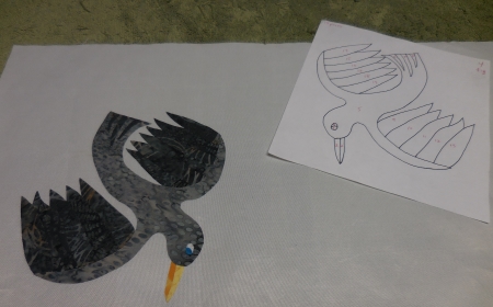 traced it upside down onto the Wonder Under. It’s a pain to iron then, because I can’t see the pattern through the paper as well. I did that once with an entire quilt. It was very frustrating. This one is not the same size, because it’s supposed to be 8×10 for the Art Produce show…so slightly different.
