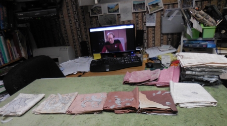 Once she was gone and it was quiet again, I set up the room the way I like it…so I can see the drawing while I’m picking stuff out…