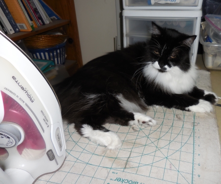 I would think she would back off a bit when I’m actually ironing, but she doesn’t. She looking pissed off…well, she always looks pissed off…but we did comb her fur, because boychild said we had to, and she quite happily whacked away at the both of us with her claws while we were doing it. Amazingly, we are both scratch free, so she didn’t really mean it.