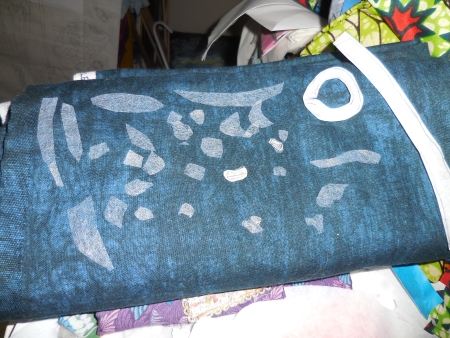 (That’s sarcasm) Yup. The fusible sometimes releases from the paper. I am really obsessive apparently and lay out the pieces of WU and try to match them up to paper pieces that are the same shape. If I can’t figure it out, I just retrace them. I have not been good about keeping my WU in plastic bags this time around, and I can tell…it’s releasing easier. But it’s still the easiest method for me to do what I do. The two pieces on the right? I didn’t number them. I will figure out what they are eventually. Something in the tree.
