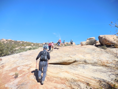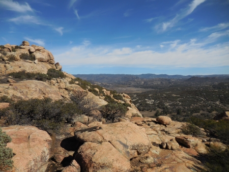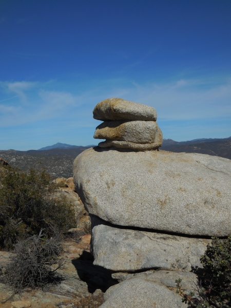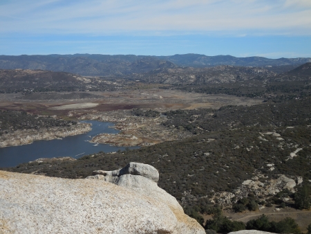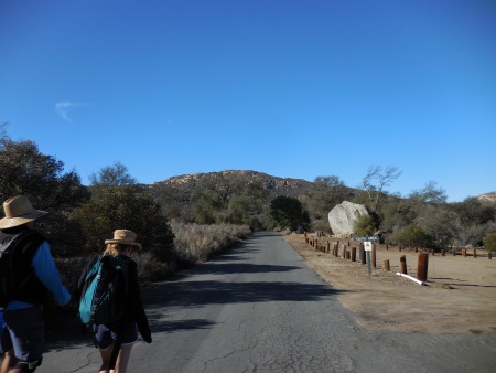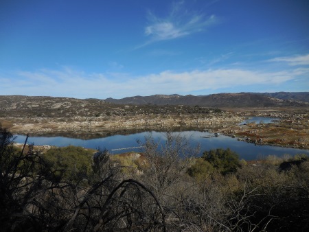 Last Saturday (like 4 days ago), I hiked Morena Butte, which overlooks Lake Morena in San Diego County’s eastern mountains. The hike starts at the Lake Morena campground in a PCT parking lot. We hiked a bit through the campground…you can see the butte rising up in the distance.