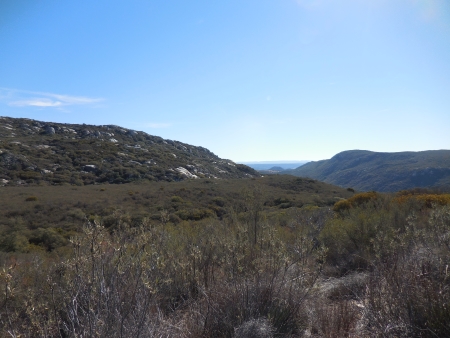 Facing north as we climb through the brush.