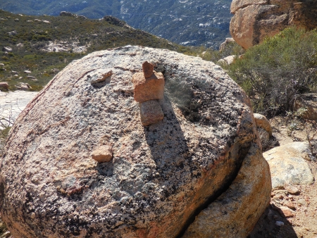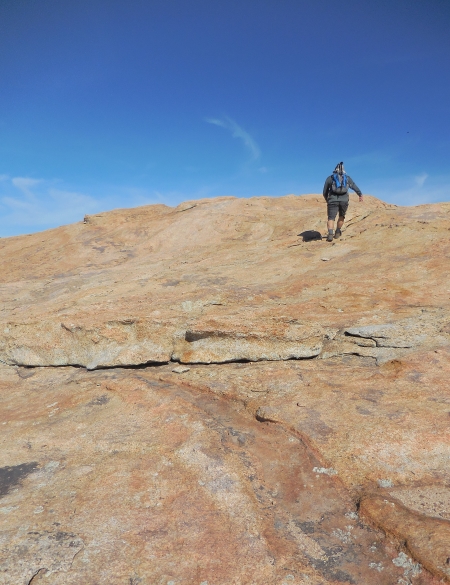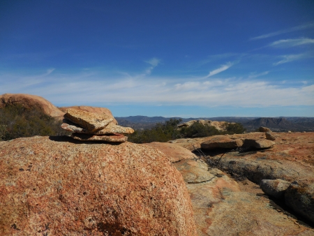 Ah yes, most of the trail was marked by cairns. Or ducks. Depending on your point of view. This is definitely a cairn. Ducks point the way to the trail. Cairns are just markers. There were lots of them, except when there weren’t, which was when you really needed them. When you’re traipsing across a butte that is mostly stone, the trail gets a bit…um…unknowable.