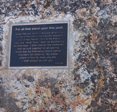 Pretty cool! And quite a hike. I like the textures and standing rocks at the top. Nice plaque.