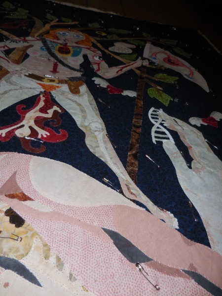 Anyway. I’m quilting. That’s good. It was a crazy busy day, but mostly it’s done now. And I wish I had gotten more done, but then again, I always wish that. I wish for the sound of hooves on the rooftop too…it’s a sign of magical doings during a magical season. Remembering when the kids were small and there was that crazy excitement…instead of the crankiness I’ve been experiencing lately. Theirs…not mine. And half the house is really clean, which is nice. The other half…I’m working on it. Have I thought about grades? Fuck no. They can wait. How long will the quilting take? I don’t know. The last one took 17 hours to quilt. Holy crap. I hope this one doesn’t. It’s smaller. It has fewer pieces. I don’t think I can finish in time if it’s 17 hours. Maybe I can. Whatever. I’m two hours in. All I can do is log more hours tomorrow, because it’s Christmas Day, and it should always include artmaking…the gift to myself.