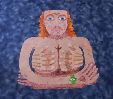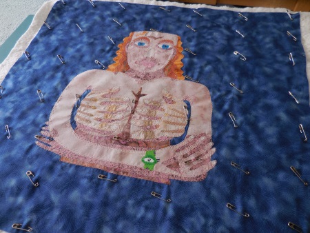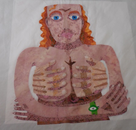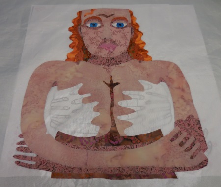 This isn’t a big quilt…it only has 160 pieces in it. I thought about doing it for the FFAC cancer donation quilt, but it’s way too complicated, too many hours. It’ll finish up about 20″ square and I already have over 8 hours in it. For those who are always devaluing an artist’s time, consider how much you get paid for a day of your actual real-life job. I know what that amount is for my job…in fact, I know my hourly rate. Now add in the cost of materials and a 40-50% gallery commission. And taxes. Now you know what an 8-hour quilt is really worth, and this will have more than 8 hours in it by the time I’m done. They want the cancer quilts to come out to about $100, so I need to draw simple and keep it small. I’m hoping to do that today too. Later. (Procrastinating…small and simple is HARD for me.)
