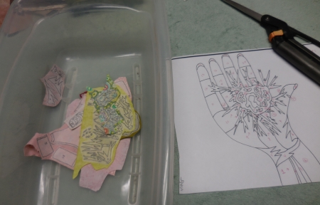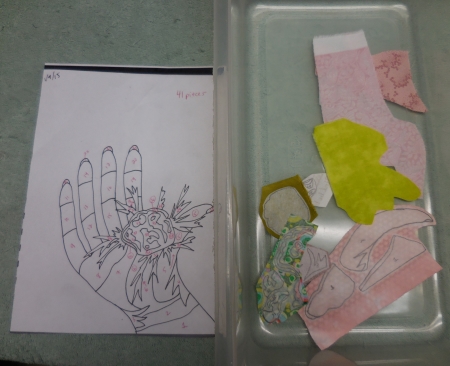 It’s too hard to see the colors under there. I have to pull the drawers out. A light would be cool. Yes, I’m still watching The Walking Dead while making art. I don’t know that it’s had an effect…I already make quilts about body parts.