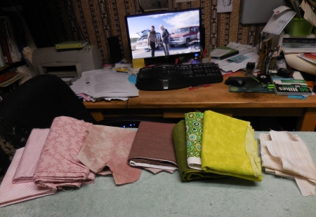 It’s just how my brain works, though. It was a long, shitty, difficult, exhausting day and I needed to feel better at the end of it. And I did. I felt like I had achieved something, and now I have stuff to work on tonight, and hopefully this weekend I will make a decision about what I’m making these two smaller quilts out of, because I’m not a fan of the upholstery samples, but I think I’m just gonna try it with one…maybe. I don’t know. Annoying.