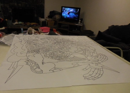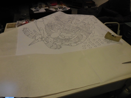 So after the staff meeting today, the science meeting, and braving Costco on a rainy afternoon, I made my way to the Not-Kinko’s (OK, it’s FedEx Office now, but that name just sucks) to enlarge the drawing. I usually go somewhere between 200-300%, depending on what I need to end up with…this one is for a largish space, and honestly, they’re only gonna get one entry out of me, because I can only make one non-violent, non-political, non-nude piece on purpose…not that I don’t like what I’ve drawn so far, but I don’t have a ton of time, and I’ve drawn a lot of pieces. So let’s be realistic. Stop. You’re not drawing the whole body…not on this one.