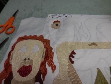 The textures were interesting. Here’s me ironing the eyeballs separately. Then I can lay them on the face at the same time and make sure spacing is right and they don’t look kittywampus.