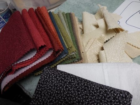 Here’s the upholstery fabrics I used…texture really was the only pattern.
