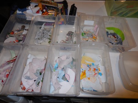 Actually, I did a little fabric managing as well…I needed enough bins to sort all those pieces…so I started putting some of Mariah’s scraps into my larger storage bins…although I still have this pile…