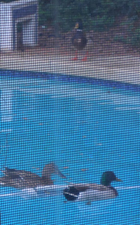 While I was working on this, a duck love triangle was working itself out in my pool. This is an annual event. The duck couple has been visiting every day, but today an extra male showed up and there was some significant drama for a bit until this point.