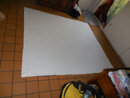 Anyway. With all that off my back (mostly) by 1:30 PM on Saturday, I had really wanted to be pinbasted by then (ha! Life kicks my ass yet again.). I did have the floor cleaned by then…which was shortlived…someone threw up on it last night (a cat). Anyway, I got the backing pieced and everything ironed on Saturday afternoon and then took a well-deserved break from my life (really a hot tub should be involved on a weekly basis) and started again yesterday. Once I was back from the grocery store (Easter dinner had to be purchased, even for us heathens), I laid the backing and batting out…