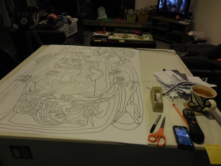 It’s not huge. I only enlarged it 250% and it fit entirely on one sheet of paper in my sketchbook (how strange). So. Maybe I number it tonight and see where it’s at.