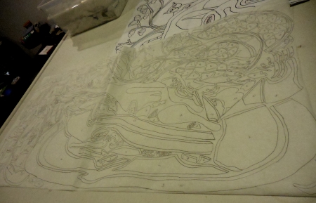 Then I finally made it home for girlchild’s dinner-making extravaganza (chicken salad) and some quiet time (not…prom-dress worries with SVU in the background) on the couch, trying to grade some more (I really want to be caught up. It may never happen. Ever.) until I gave up and started cutting Wonder Under, because I remembered my mistake of the night before. Make Art Dummy!