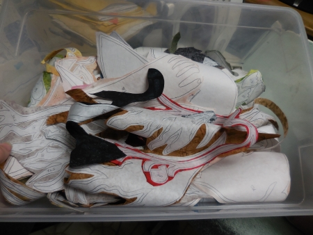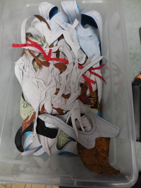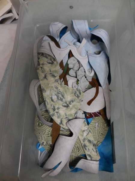 I cut all those out yesterday too…here’s the whole bin full of pieces at the end of the ironing, although…