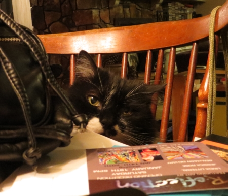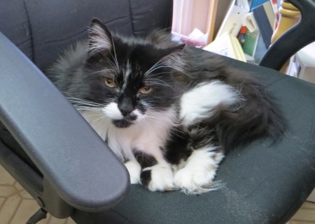 It didn’t work, so we kept her…and everyone adjusted. She adopted the boychild as her special caregiver, and he was happy to have her. Kitten learned to run fast or have an escort to the litter tray and food (I carried her down the hallway every morning and every afternoon), and I learned to close my bedroom door at night, so I wouldn’t have cat fights in there at 2 AM.