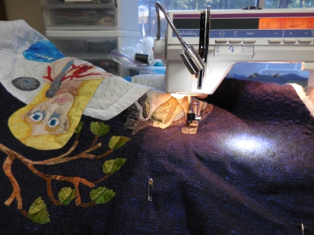 She’s got 12 hours of quilting in her. But she’s done. She just needs a binding…which really means I should get my ass off this chair and go buy some fabric for that, because no, I don’t have a piece big enough. I think. I might look first. But I don’t think I do.