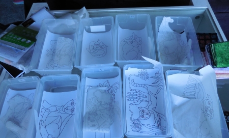 I also worked on some smaller quilts for sale yesterday, because it’s an easier project to lug around outside the house…I traced all the Wonder Under for 7 projects…