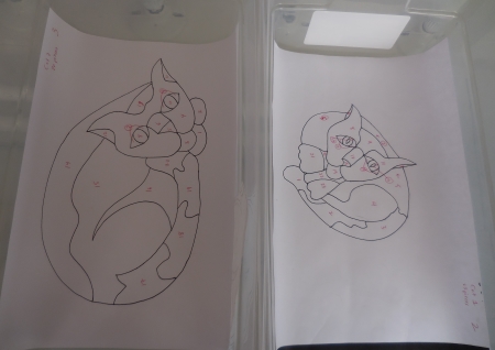 So that’s 6 cats…then I liked the heart in hands that I did for the FFAC donation, so I had drawn one version that was way too complicated and one simple one…