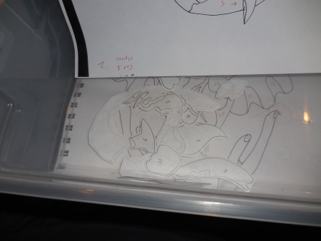 Here’s the drawing upside down on the light table. You can see why I love my light table almost as much as my kids. Seriously. It’s lovely.