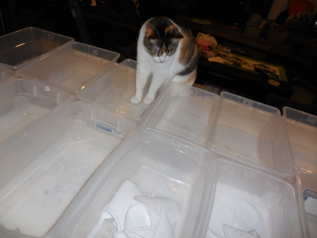 Then she sat right up against the first three bins, pissy that I was taking up space on her light table.